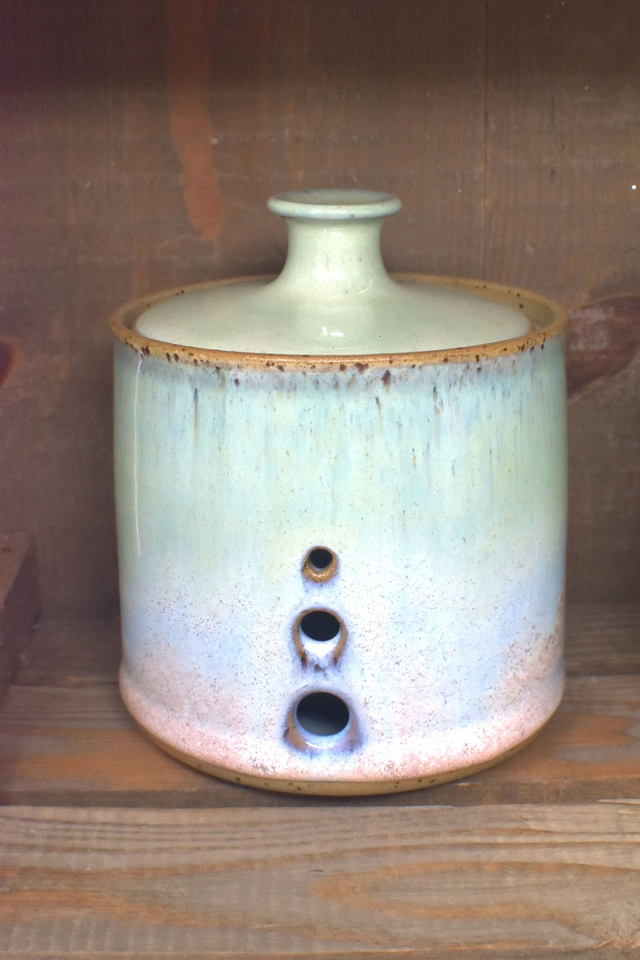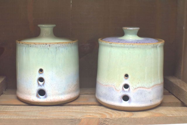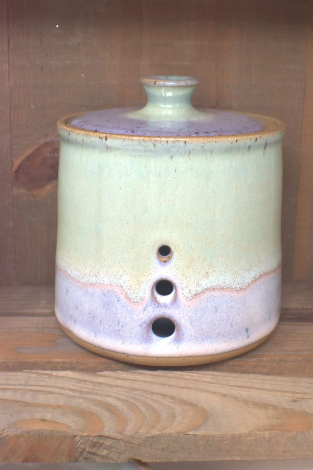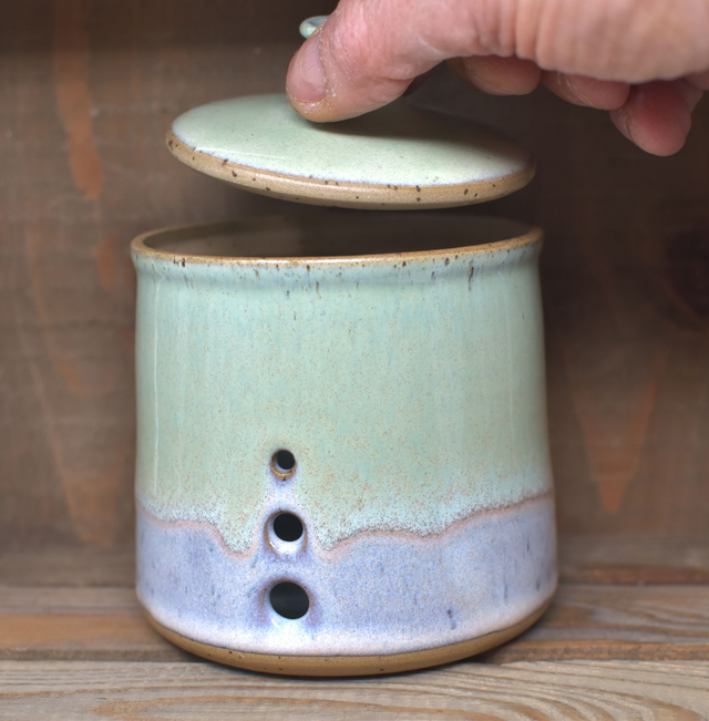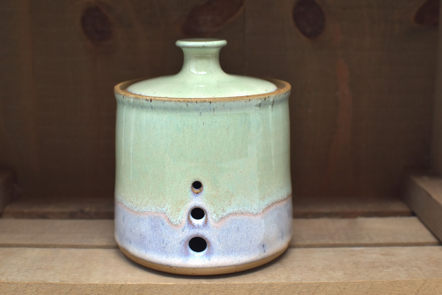 Keep your garlic fresh and within easy reach with this beautifully made stoneware garlic keeper. Designed for both function and style, it's the perfect addition to any kitchen countertop and holds multiple garlic bulbs. Handmade in Cornwall using speckled stoneware clay and finished with our gorgeous Coastline Green glaze.